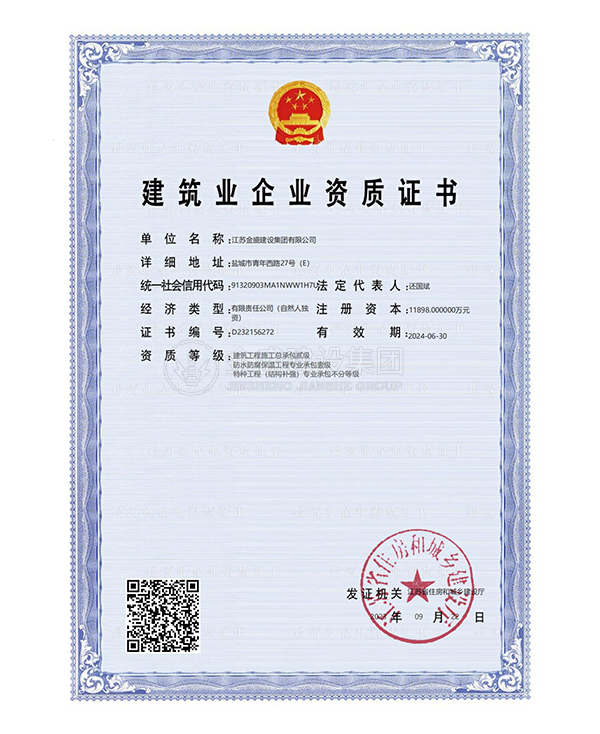 • 施工總承包貳級(jí)新防水防腐保溫工程專業(yè)承包一級(jí)